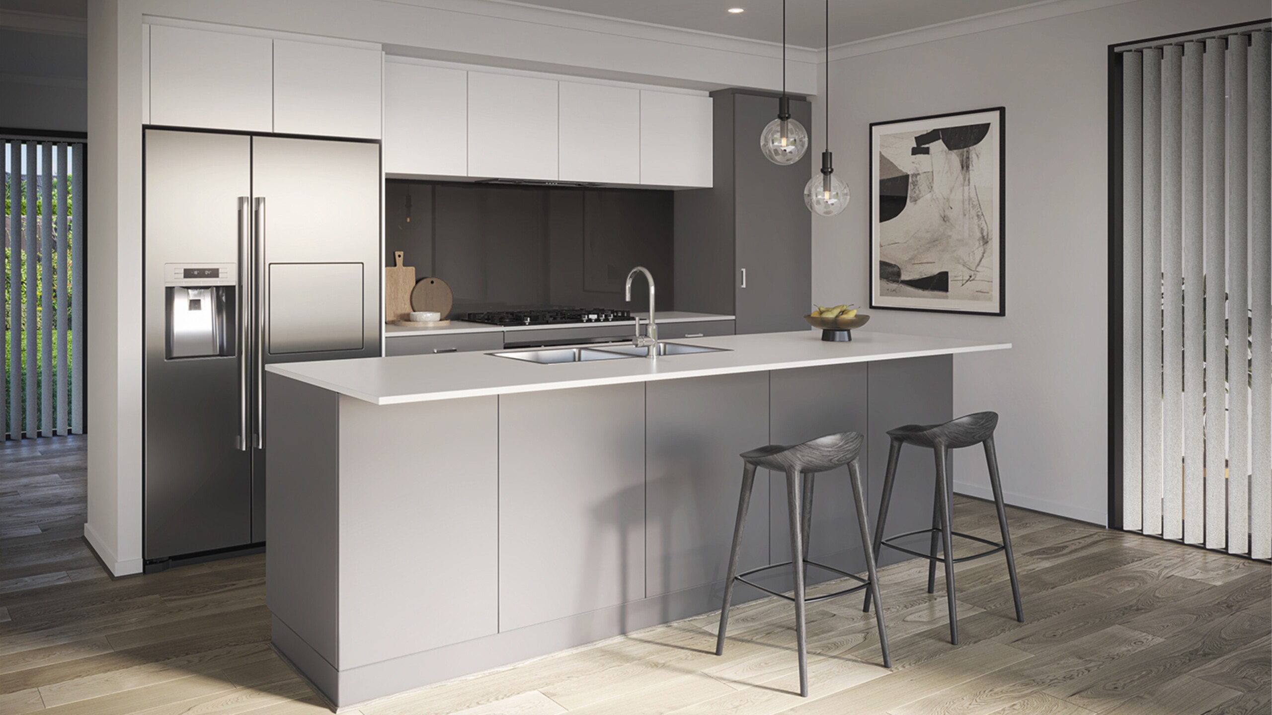 Step into Bardot, where modern meets luxe in a symphony of sophistication. Picture soft neutrals like light, warm greys and a touch of white sheen cabinetry. The pièce de resistance - a stunning dark floor that anchors the whole look with a touch of drama. Bardot isn’t just a colour scheme; it’s your gateway to stylish living, where every corner oozes glamour and allure.